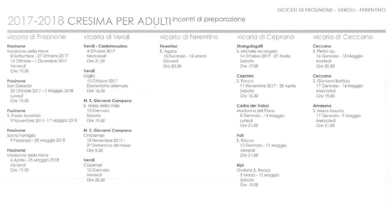 Aprendo il file si può consultare il Calendario degli incontri di preparazione alla Cresima per gli adulti