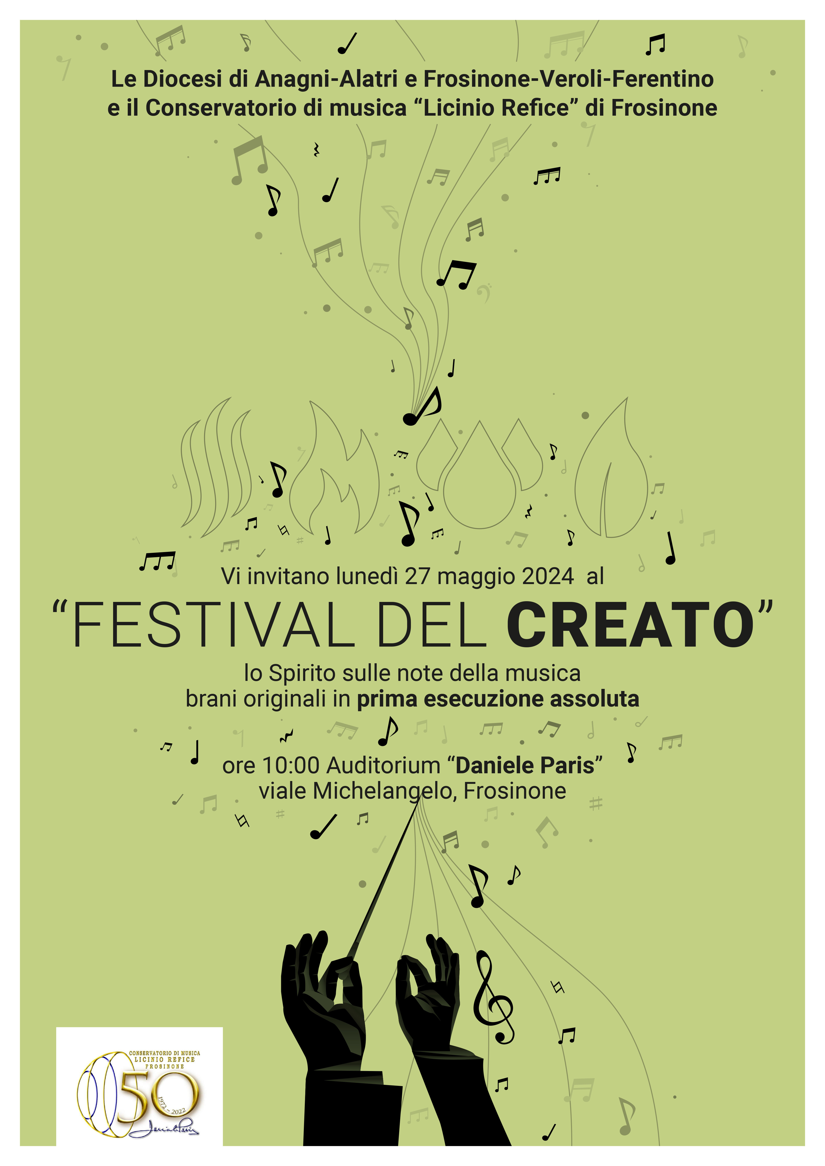 L’Auditorium “Daniele Paris” del Conservatorio di Musica “Licinio Refice” di Frosinone ospiterà l’evento conclusivo del “Festival del Creato”. Un progetto nato nell’ambito delle iniziative promosse dalle Diocesi di Frosinone-Veroli-Ferentino e di Anagni-Alatri per l’itinerario sinodale. Grazie alla disponibilità del Conservatorio è stato proposto ai compositori di scrivere dei brani inediti ispirati alla salvaguardia del creato, secondo le indicazioni di […]
