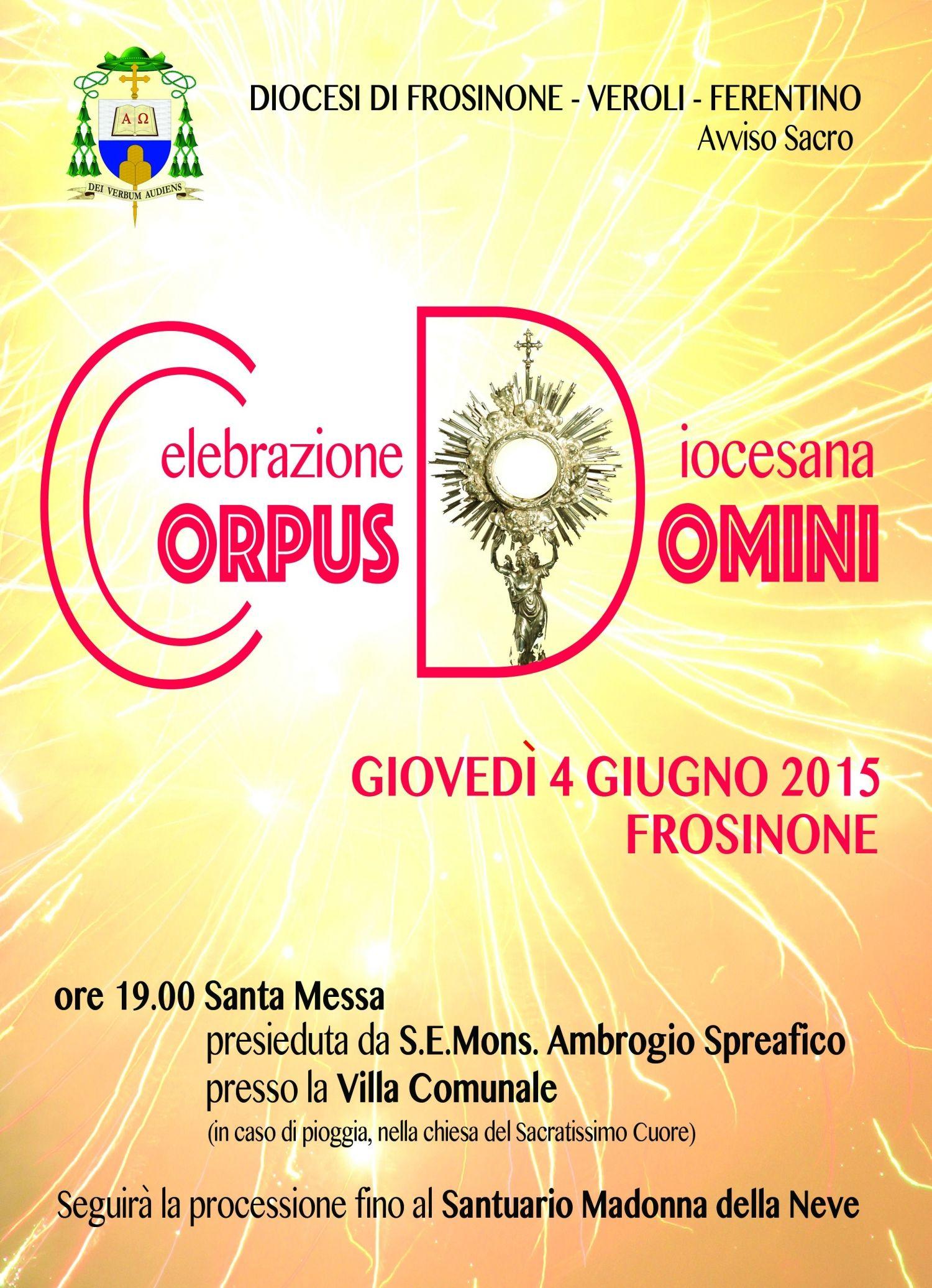 Giovedì 4 giugno celebrazione diocesana del Corpus Domini a Frosinone: appuntamento alla Villa Comunale a partire dalle 18.30.