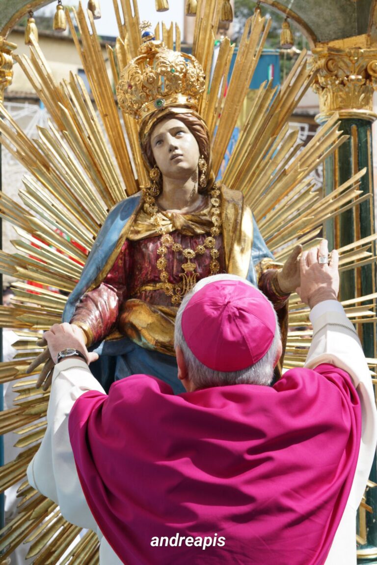 Nell’omelia della Messa che ha presieduto appena dopo il rientro della grande processione con il simulacro della Vergine del Suffragio, monsignor Marcianò, riferendosi al Vangelo della seconda domenica di Pasqua e alla coincidente festa della “Divina Misericordia”, ha definito Maria come «colei che dona al mondo quella misericordia che è intimamente legata alle ferite di Cristo e che, per essere riconosciuta, ha bisogno degli occhi della fede, come chiesto da Gesù risorto all’apostolo Tommaso». Quella fede alla quale ogni cristiano è chiamato a dare il proprio assenso perché Dio possa incarnarsi nel mondo ancora oggi e «si possa portare in ogni ambito di vita la rivoluzione dell’amore».