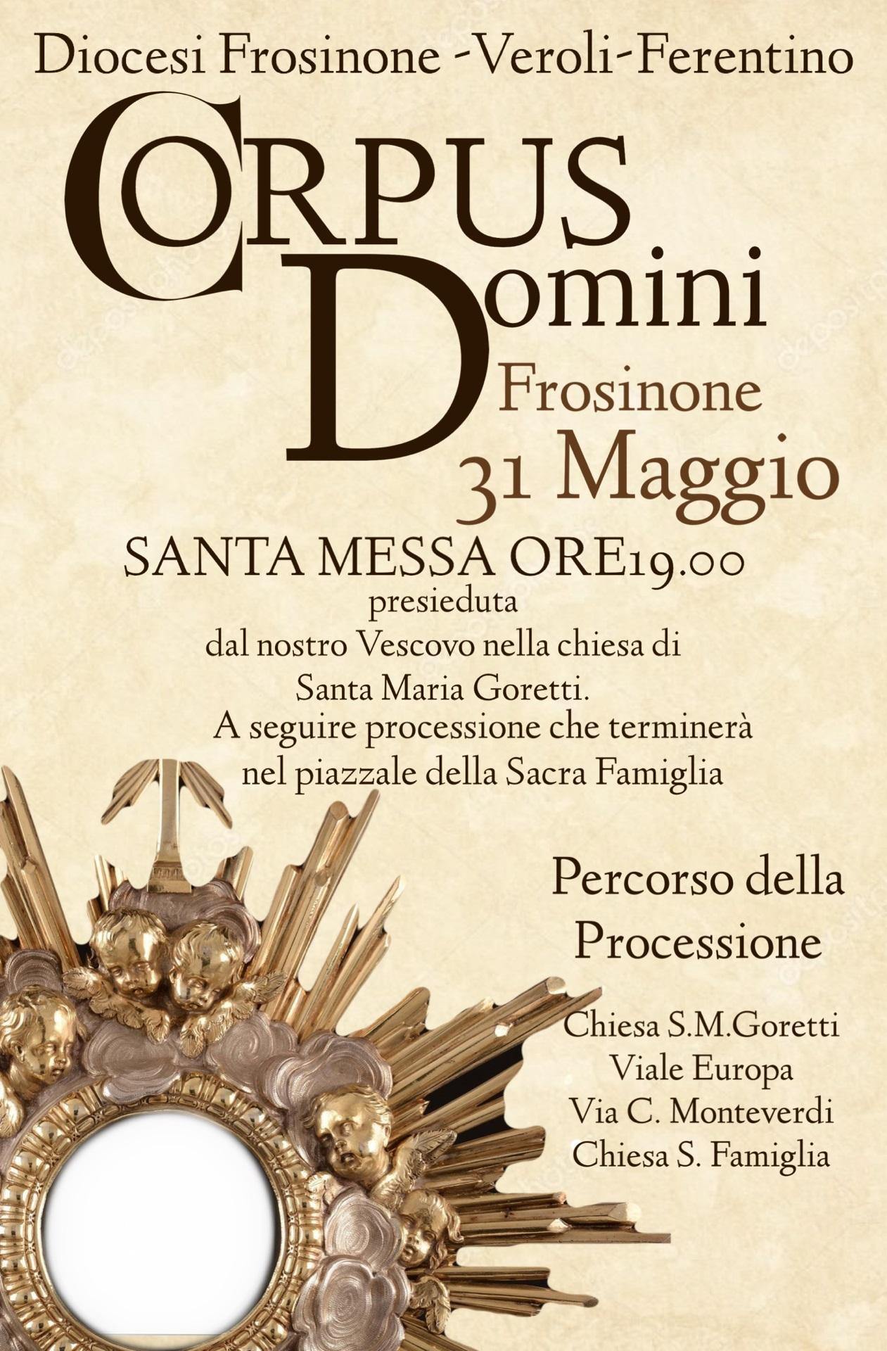 Come avviene ormai da qualche anno la celebrazione diocesana del Corpus Domini, presieduta dal Vescovo, si svolge a Frosinone il giovedì sera, mentre il sabato sera o nella giornata di domenica nelle singole parrocchie.