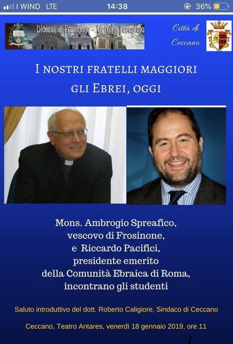 La notizia sul sito internet della CEI a questo link: https://ecumenismo.chiesacattolica.it/2019/01/16/iniziative-della-diocesi-di-frosinone-sul-dialogo-ebraico-cristiano/ .