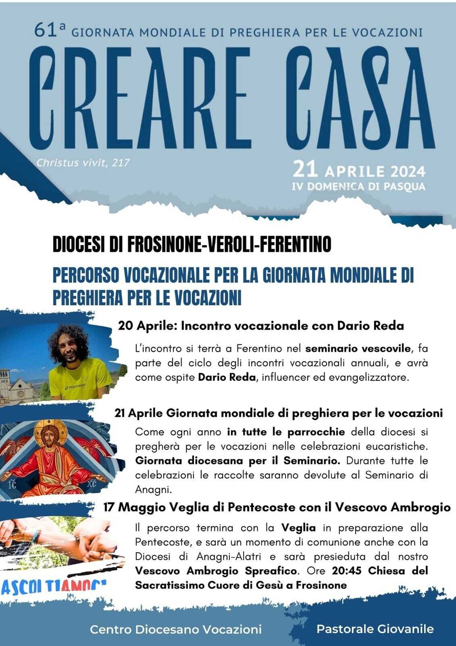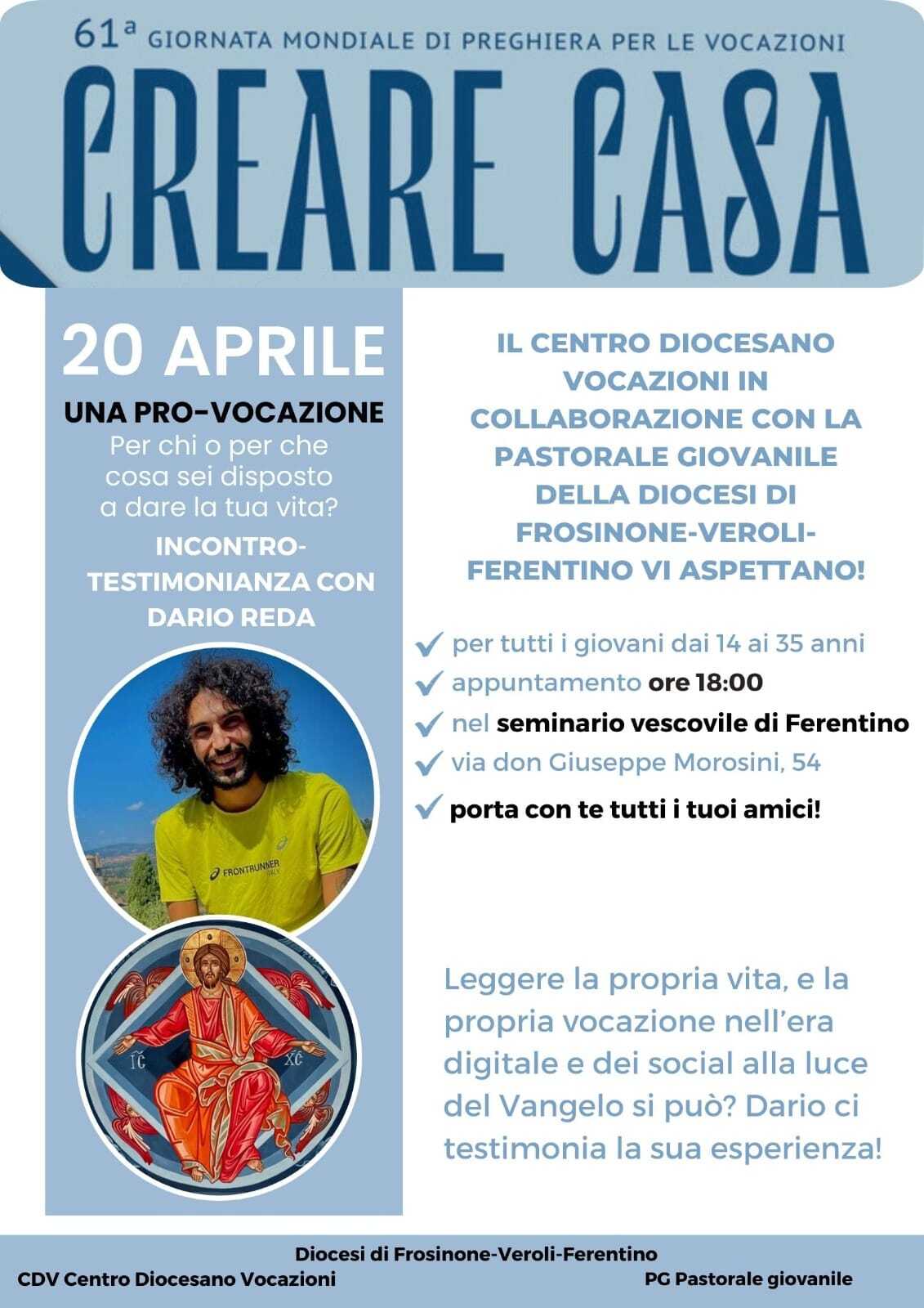 – sabato 20 aprile un incontro vocazionale con Dario Reda (ore 18, Seminario Vescovile di Ferentino);