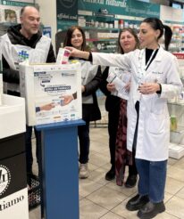 Nella foto: volontari “in azione” nella farmacia Madonna della Neve, con una farmacista (foto tratta dal profilo fb della Farmacia Madonna della Neve)