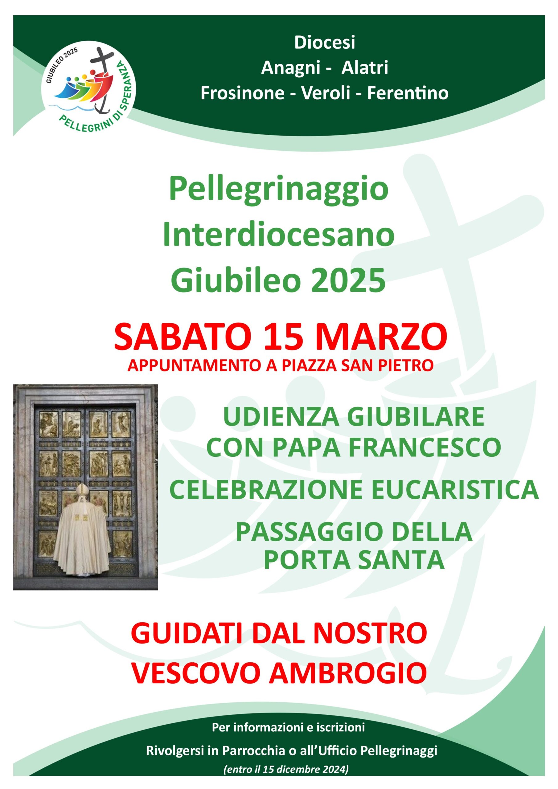 Come annunciato dal Vescovo Ambrogio in occasione della giornata conclusiva della Assemblea interdiocesana, sabato 15 marzo 2025 le Diocesi di Frosinone-Veroli-Ferentino e di Anagni-Alatri vivranno il pellegrinaggio interdiocesano.