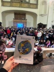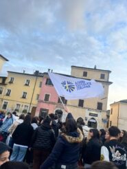 Significativa, la presenza dei parroci don Pierluigi Nardi, don Antonio Castagnacci, Padre Efrain Mora Garcia e naturalmente don Walter a sostegno delle rispettive associazioni parrocchiali; una presenza che ha mostrato quanto sia importante la collaborazione, l’accompagnamento e l’amicizia tra laici e parroci, per lavorare per il regno di Dio. Un gesto condiviso da tante persone, che hanno acquistato la spilla della pace con lo scopo di fare del bene a qualcuno. Dopo i saluti, la divisione in settori Adulti, Giovani, ACR per lo svolgimento delle attività propedeutiche alla marcia e infine il corteo: un fiume di persone, tanti striscioni, cartelloni e slogan gridati. Un corteo colorato, rumoroso che urlava e pregava la pace. Una marcia partecipata, che parlava di unione, di condivisione, di fratellanza e di vita. Si, la marcia era viva! E Dio ci accompagnava, come sempre! Un’emozione unica vedere diverse generazioni insieme, unite, con lo stesso desiderio di dire no alla violenza e di dire sì all’ascolto e al rispetto, dell’uomo e del creato. Uno spazio importante, come detto, è stato dedicato alla vendita del gadget pensato dall’Azione Cattolica Nazionale per il mese della Pace 2026, la spilla della pace, il cui ricavato sarà destinato ad aiutare la Terra Santa, martoriata dalla guerra.