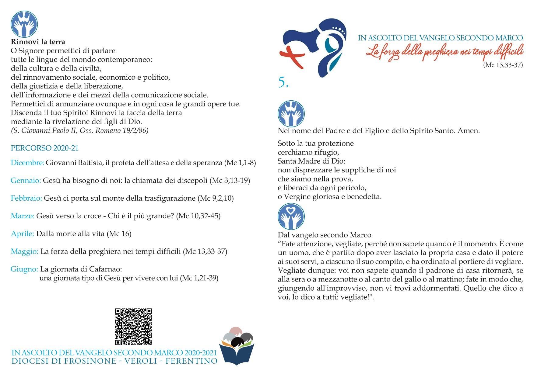 Quest’anno al centro della riflessione ci sarà il Vangelo di Marco, che ci accompagnerà nell’anno B: per chi lo desidera è anche disponibile la pubblicazione del Vescovo Ambrogio, intitolata “Marco. Il primo Vangelo” (acquistabile presso la portineria della Curia o presso la libreria “Il Sagrato” di Frosinone).