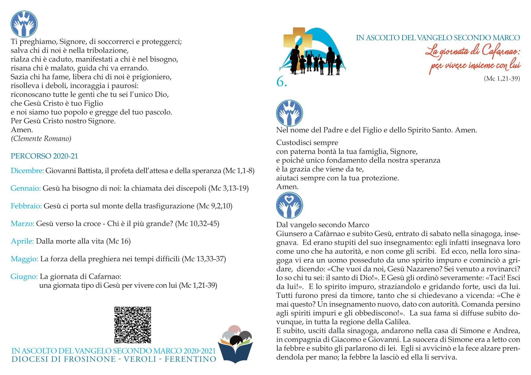 | Giugno 2021 | La giornata di Cafarnao: una giornata tipo di Gesù per vivere con lui (Mc 1,21-39) |