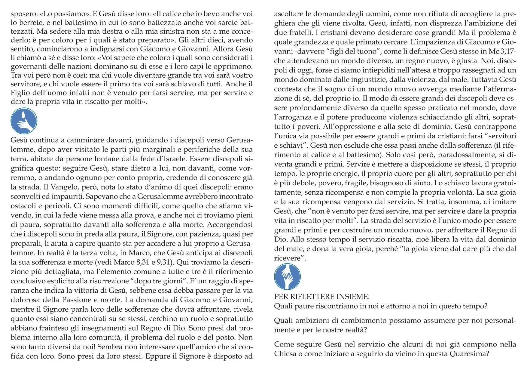 | Marzo 2021 | Gesù verso la croce – Chi è il più grande? (Mc 10,32-45) |