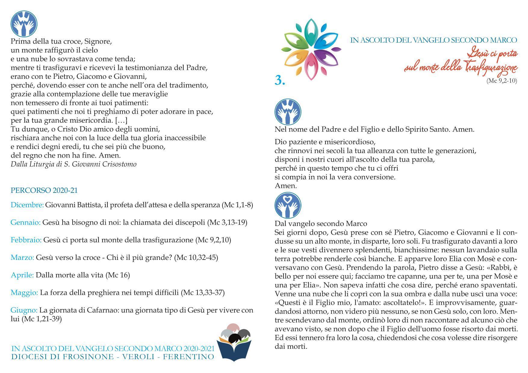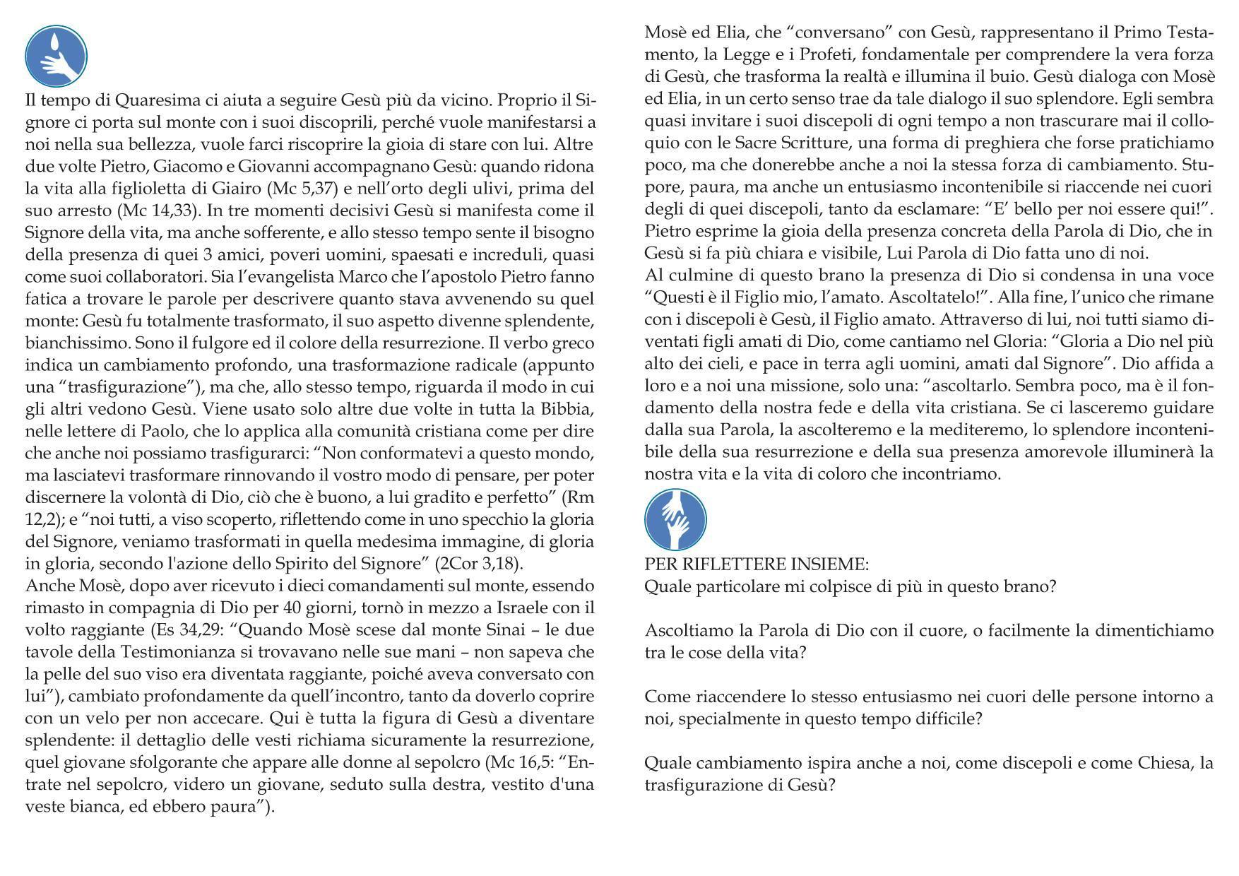 | Febbraio 2021 | Gesù ci porta sul monte della trasfigurazione (Mc 9, 2-10) |