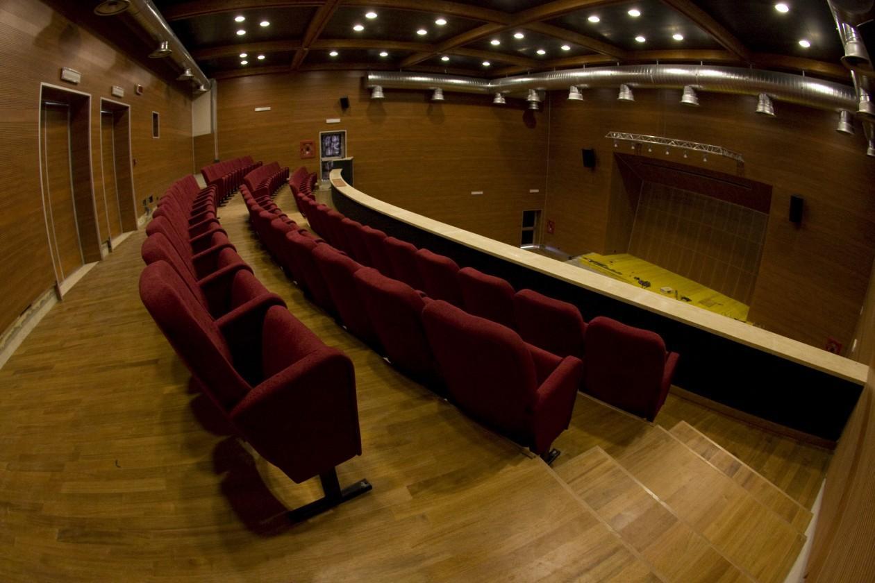 Inoltre, è fornita di moderne attrezzature tecnologiche: una cabina regia, impianto per videoproiezioni, impianto audio line array, possibilità di connessione rete LAN (internet-intranet) rete WIFI. Molto curata risulta l’acustica che si presta a un’ottima definizione della risposta sonora. Il sistema di climatizzazione consente un livello di comfort eccellente, con una rapida messa a regime in temperatura della sala prima degli eventi. Il sistema di illuminazione, completamente integrato nella struttura architettonica, contribuisce alla creazione di effetti che esaltano l’estetica dell’intero complesso.