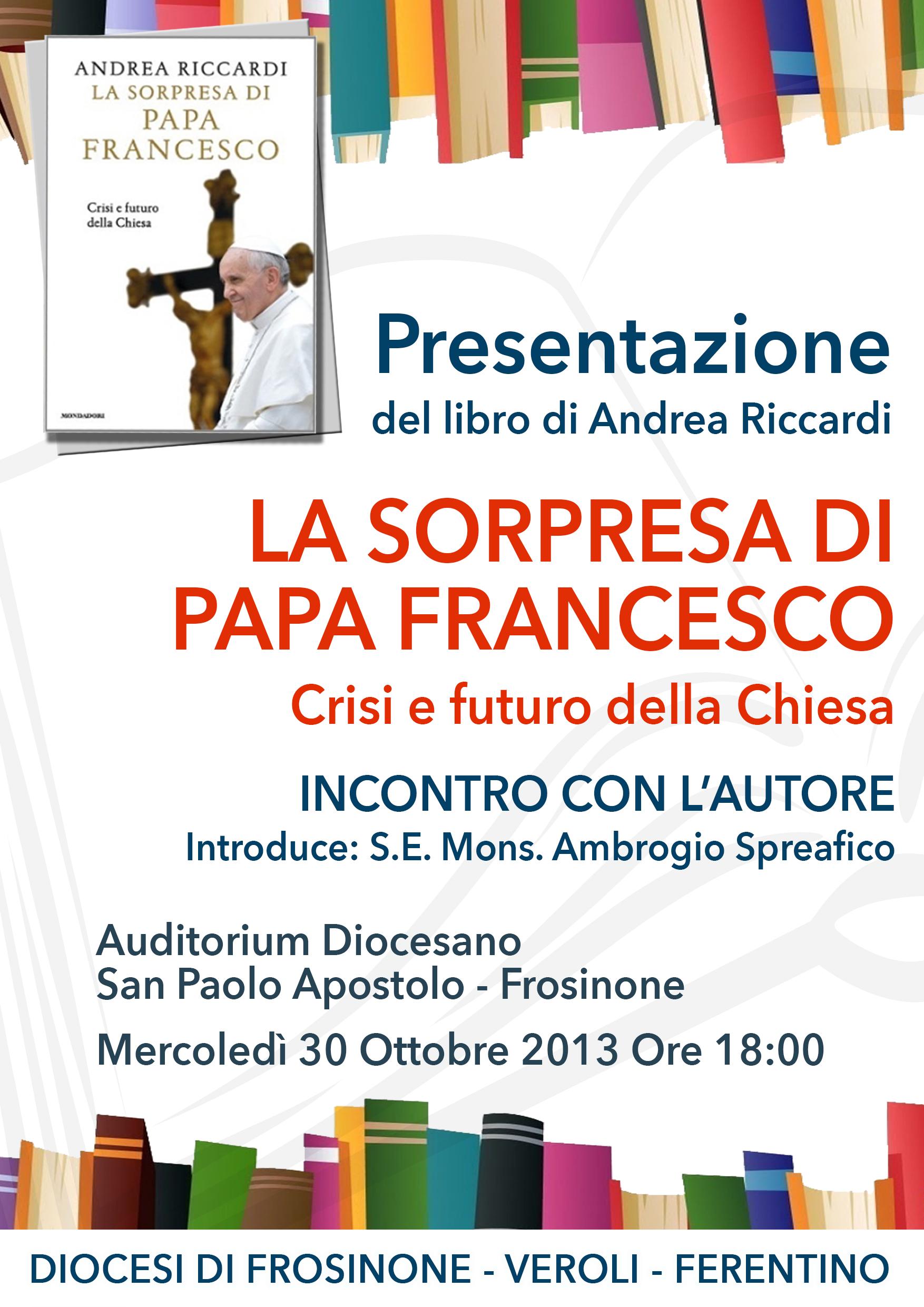 Mercoledì 30 ottobre l’Auditorium Diocesano ospiterà la presentazione del libro di Andrea Riccardi “La sorpresa di Papa Francesco – Crisi e futuro della Chiesa” alla presenza dell’autore, con introduzione del Vescovo.