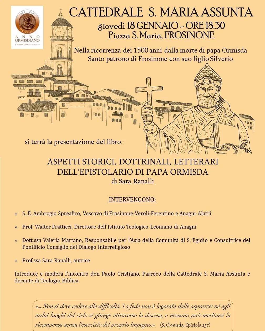 Giovedì 18 gennaio 2024, in Cattedrale, presentazione del libro “Aspetti storici, dottrinali, letterari dell’epistolario di Papa Ormisda” di Sara Ranalli (ore 18:30, partecipazione gratuita).