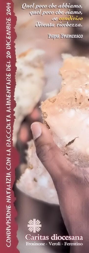 o    Sabato 20 dicembre: raccolta alimentare promossa dalla Caritas diocesana presso i supermercati della Diocesi. Segue immagine locandina jpgRaccolta_dicembre_2014.jpg