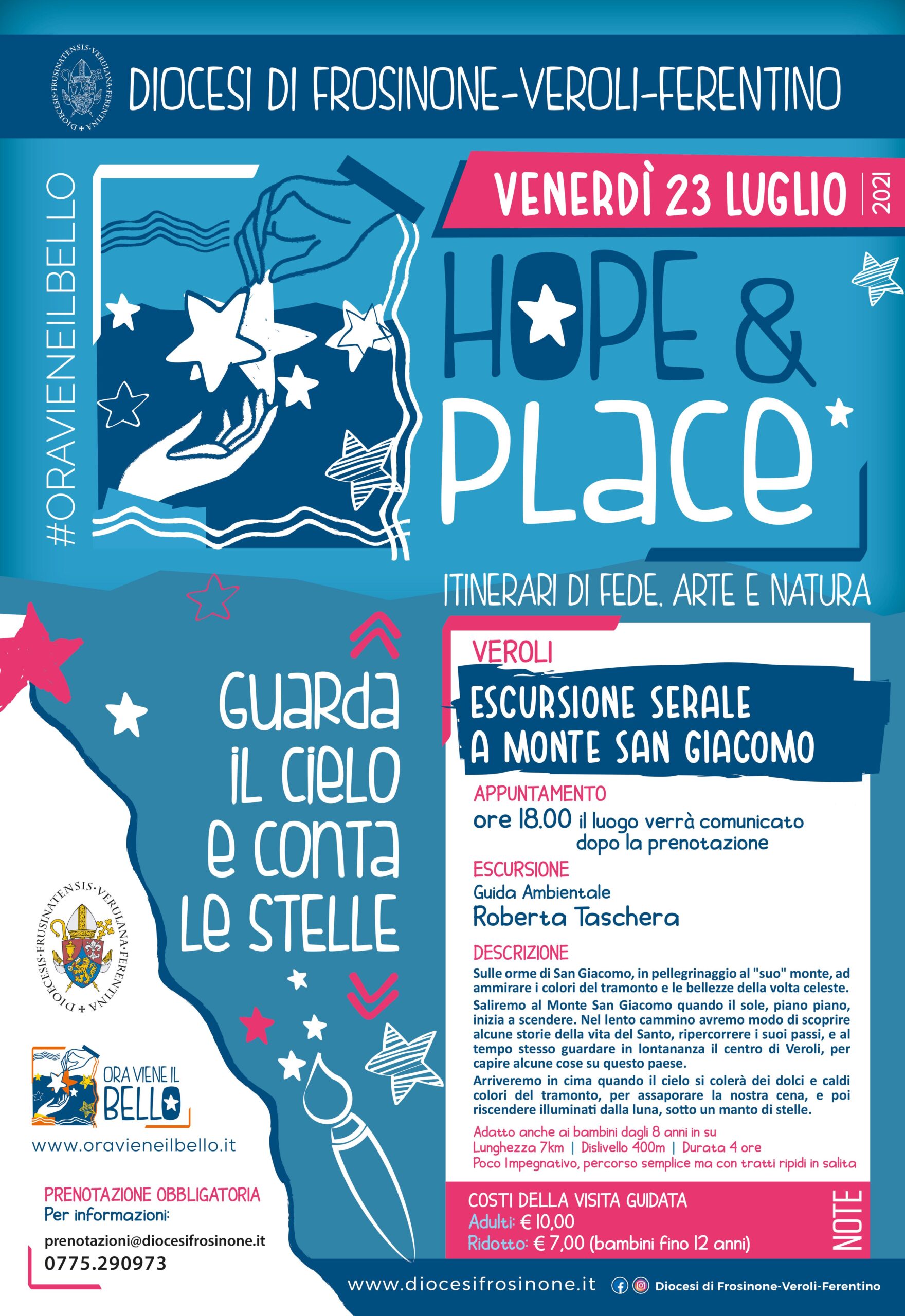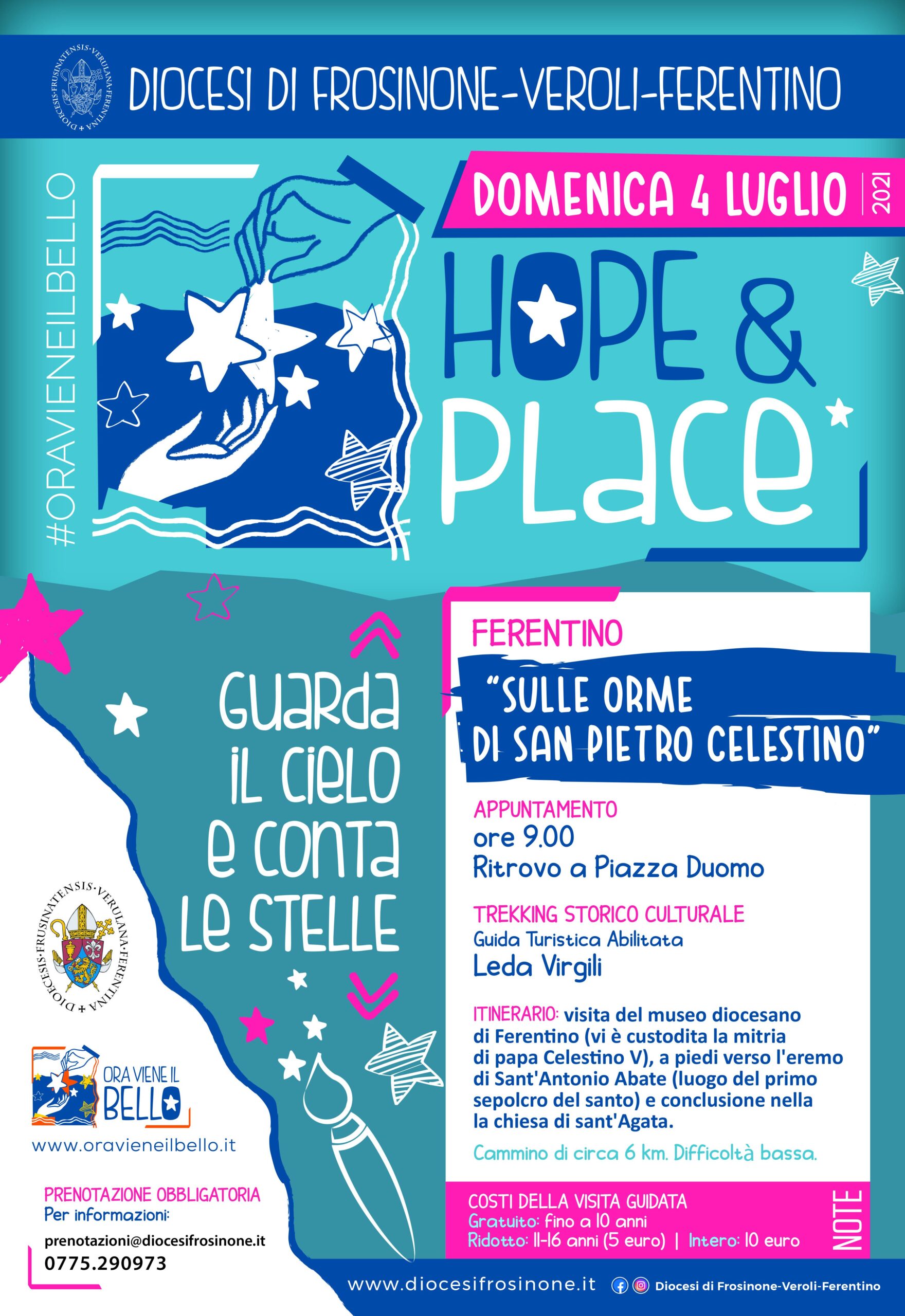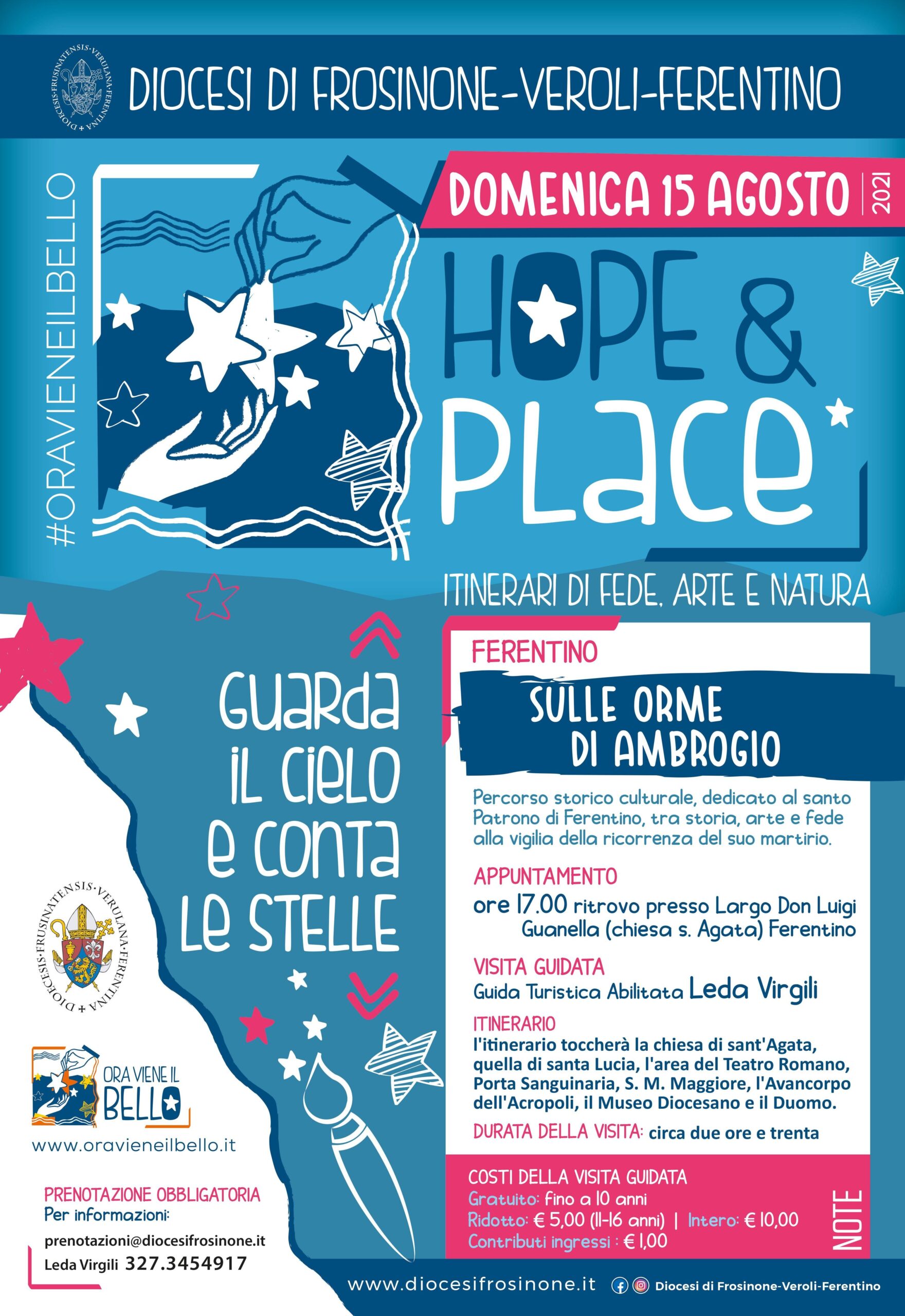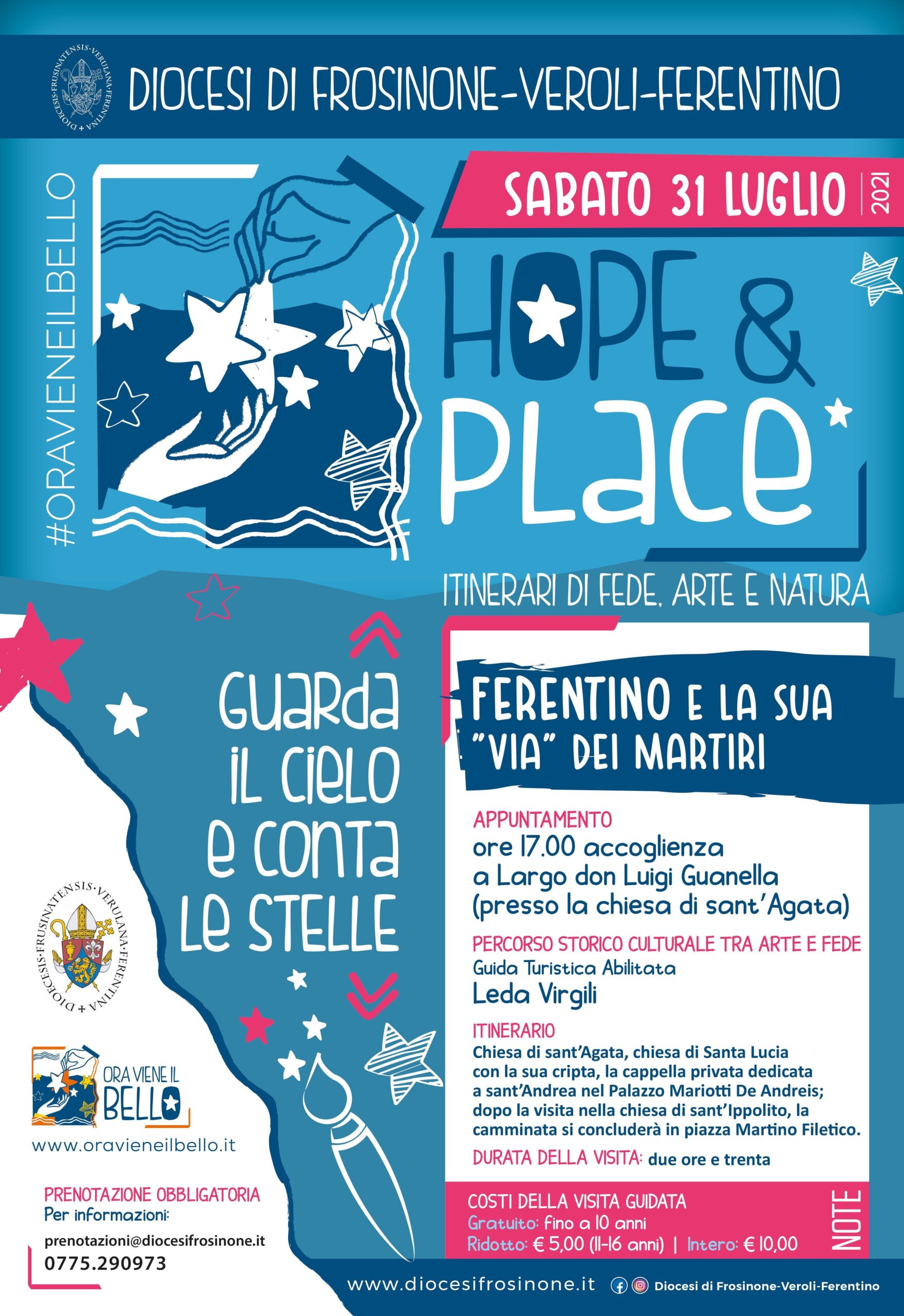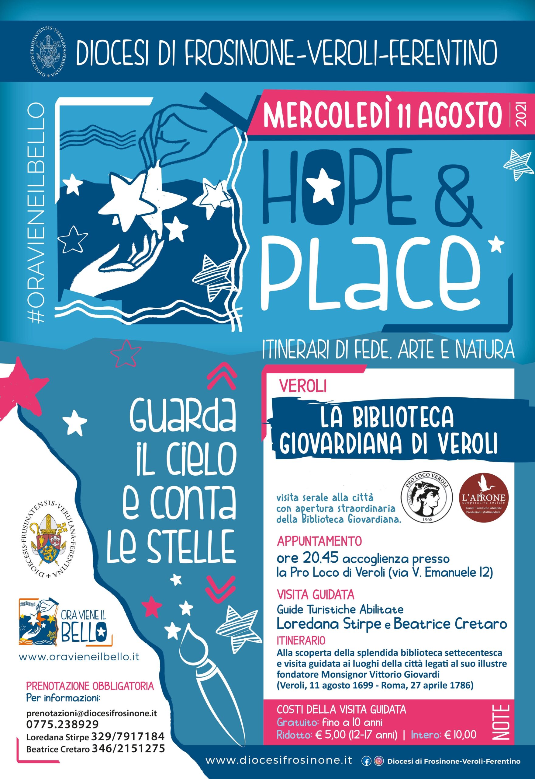E’ stato messo a punto un calendario di “Itinerari di fede, arte e natura” con visite guidate ed escursioni in alcuni dei luoghi del nostro territorio, in sinergia con guide turistiche abilitate ed ambientali: iniziative che rientrano nella programmazione di “Ora viene il bello” denominata “Hope&Place”, per ri-scoprire la nostra terra, recuperando il valore dello stupore e della bellezza.