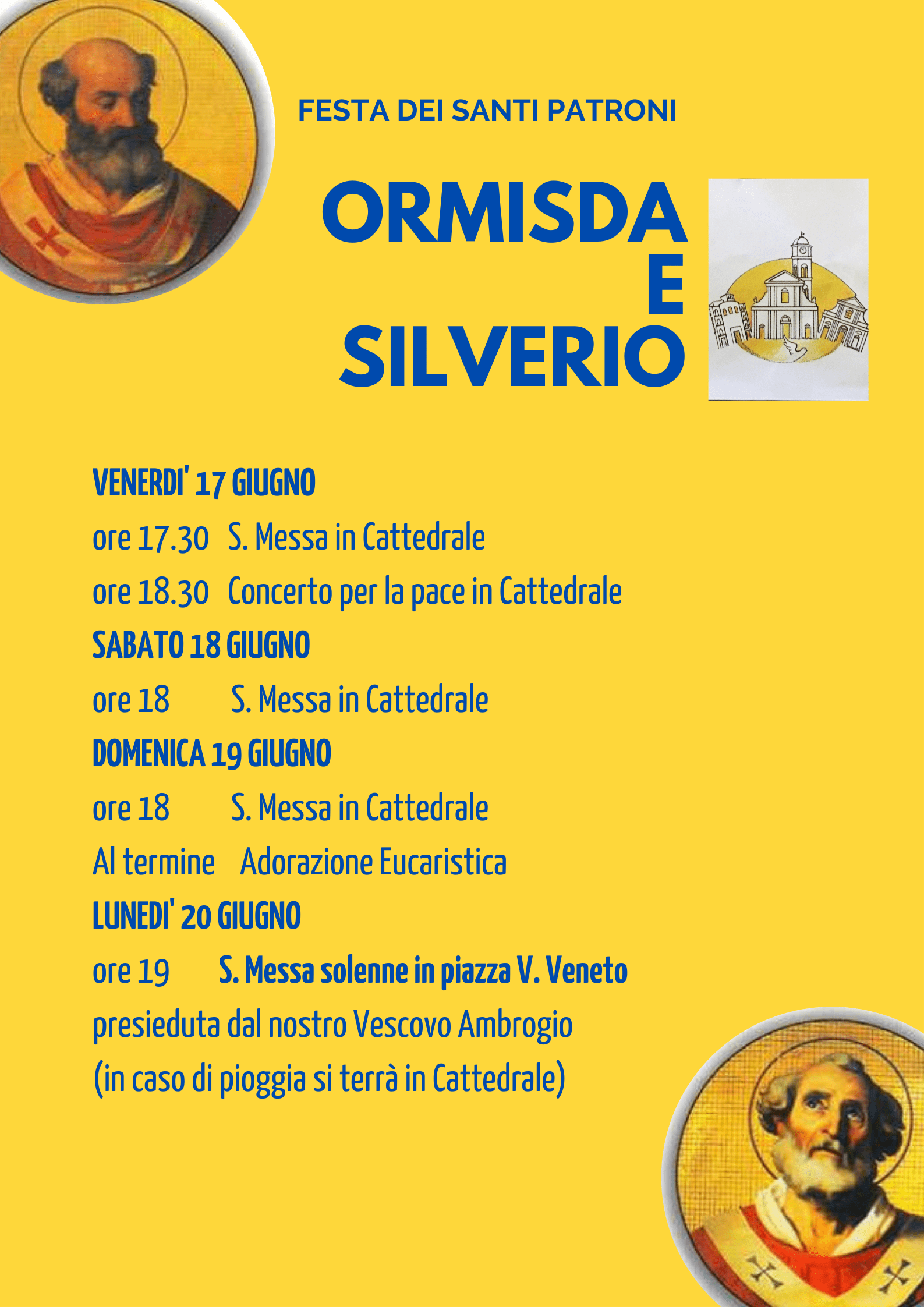 La città di Frosinone celebra i Santi Patroni, Silverio e Ormisda: le celebrazioni avranno luogo in Cattedrale da venerdì 17 giugno.