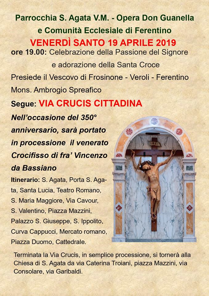 – alle ore 19, ha preso parte alla Liturgia del Venerdì Santo, nella chiesa di Sant’Agata a Ferentino.