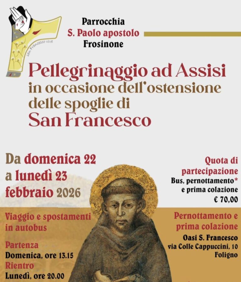 Pellegrinaggio per l’ostensione delle spoglie di San Francesco. Organizzato dalla parrocchia San Paolo di Frosinone