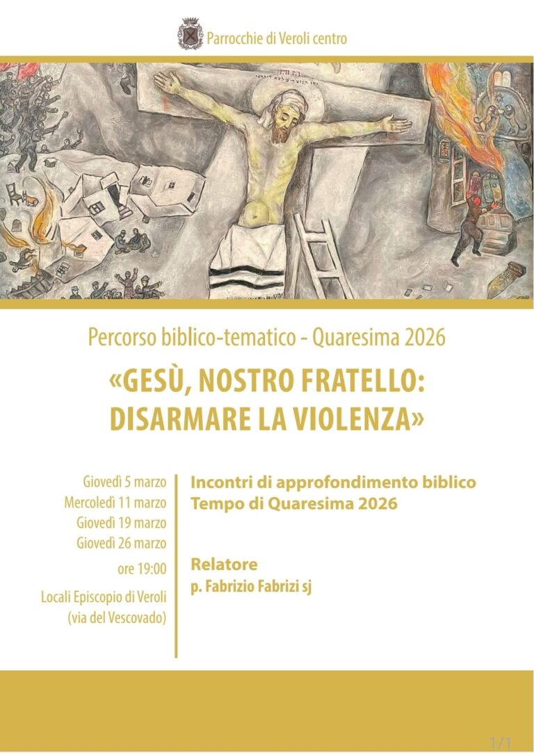 Ciclo di incontri di approfondimento biblico – Organizzato da parrocchie Veroli centro, relatore padre Fabrizio Fabrizi sj – Giovedì 5 marzo, mercoledì 11, giovedì 19, giovedì 26 – Locali Episcopio di Veroli, h 19