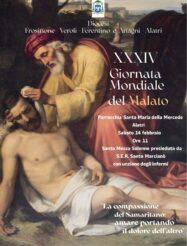 Nelle nostre Diocesi di Frosinone – Veroli – Ferentino ed Anagni – Alatri, questo solenne momento verrà vissuto insieme ai Cappellani degli ospedali di Alatri e Frosinone e alle associazioni che quotidianamente operano in questo ambito, sabato 14 febbraio alle ore 11 presso la parrocchia Santa Maria della Mercede ad Alatri con una Messa solenne e l’unzione degli infermi che verrà celebrata da Monsignor Santo Marcianò, Arcivescovo Vescovo delle due Diocesi.